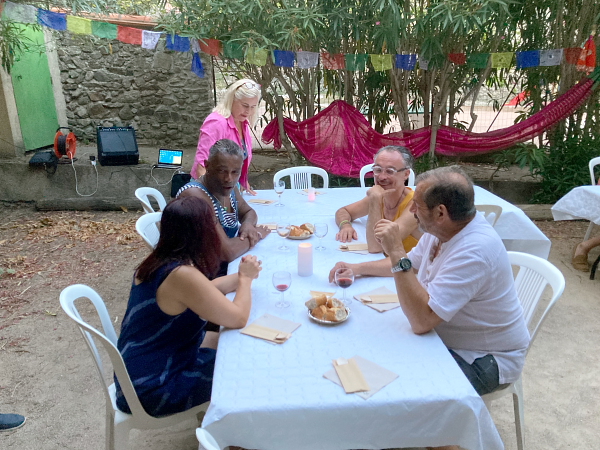 A table dans les jardins de la mairie.