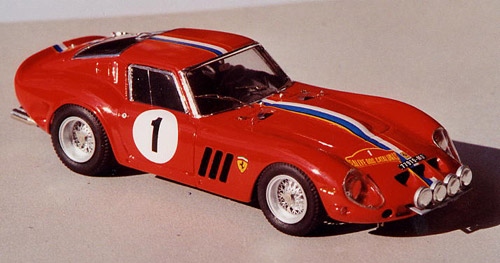 Modèles réduits de la Ferrari 250 GTO (N°1) et de la Porsche Carrera Abarth (N°10) au rallye 2 Catalognes 1965.