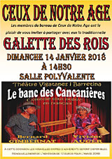 | 14 janvier | Galette des Rois et animation avec "Le banc des cancanières". |