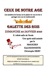 | 29 janvier | Galette des rois et animation par le magicien illusionniste Christophe Hery. |