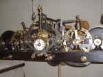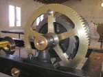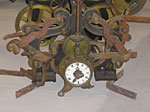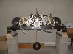 Septembre 2006. Nouvelle série de photos de l'horloge avant d'entamer la restauration. On peut même y voir, encore en place autour des roues, les câbles en acier permettant de suspendre les poids. |