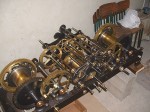 Novembre 2006. De retour à Cassagnes en ce fin de mois de novembre, on continue le nettoyage avec comme objectif le premier corps de rouage. Démontage complet et nettoyage. |
