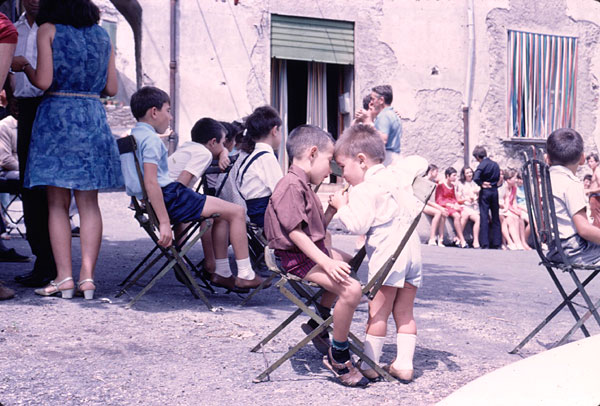 Gamins sur la place en train de chahuter plutôt que de regarder les danseurs !!