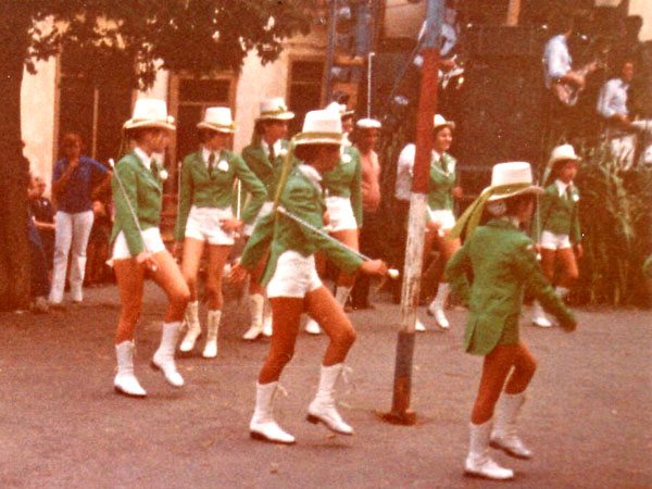 Majorettes sur la place. Il est probable que ce soit la fête du 18 août 1978.