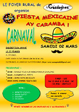 16 h : Cavalcade avec thème libre. 17 h 30 : Goûter des enfants. 18 h : Spectacle avec le "Comité Carnavalesque Cassagnol" et au programme :