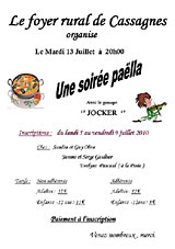 | 13 juillet | Repas du 14 juillet. Paëlla et animation avec "Joker". |