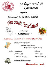 | 24 juillet | Soirée brochettes et animation avec "Expresso". |