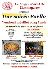 | 12 juillet | Repas paëlla avec "Les Cassagnols" en animation. |