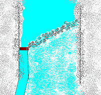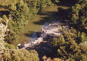 | Schéma du petit barrage en pierres et du canal de prise à "Ferran". | Et tel qu'il était en août 1991 avant les travaux du barrage. |