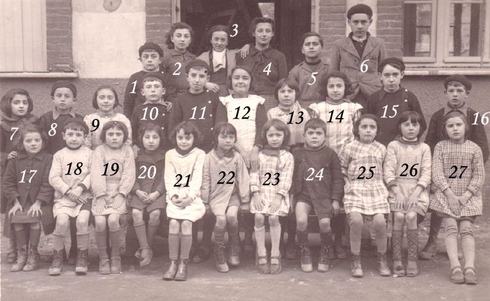 1 - Amédée Simorre. 2 - Irène Bénezet. 3 - Lucette Pélissier. 4 - Lydie Crabié. 5 - Pierre Bourreil. 6 - Jeannot Duchand. 7 - Rosette Pagès. 8 - Georges Sire. 9 - Rose Duchand. 10 - Gabriel Olive. 11 - Armand Fons. 12 - Francine Clotes. 13 - Jeanne Sire. 14 - Josette Pélissier. 15 - Roger Crabier. 16 - Paul Mathieu. 17 - Régine Pagès. 18 - Robert Crabier. 19 - M-Rose Ferrier. 20 - Josette Massé. 21 - Francette Gallia. 22 - M-Thérèse Sire. 23 - Huguette Bénezet. 24 - Alexandre Trilles. 25 - Jeannine Duchand. 26 - Gisèle Sire. 27 - Raymonde Marti. |