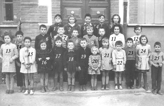 1 - Francis Delonca. 2 - Lucienne Filela. 3 - Henri Salvat. 4 - Claude Alibert. 5 - Geneviève Aubert. 6 - Jeannot Massé. 7 - J-Marie Pagès. 8 - Gilbert Peypoch. 9 - Christian Marti. 10 - André Pélissier. 11 - Colette Pons. 12 - Danièle Alibert. 13 - Alice Trousseu. 14 - J-Pierre Jaupart. 15 - Irénée Delonca. 16 - Maryse Graindorge. 17 - Louis Salvat. 18 - "Gégé" Graindorge. 19 - Paul Frontin. 20 - Lydie Alibert. 21 - Roger Alibert. 22 - Alèxis Delonca. 23 - Claude Sicart. 24 - Francine Frontin. 25 - Francis Izart. |