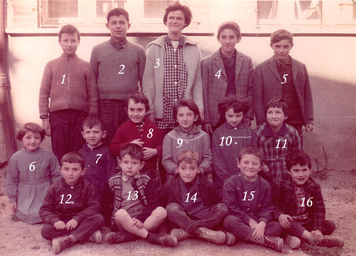 1 - Gérard Sire. 2 - Alain Biles. 3 - Jacqueline Crabié. 4 - Hervé Jaupart. 5 - Robert Alibert. 6 - M-Christine Crabier. 7 - J-Marie Alquier. 8 - Françoise Crabier. 9 - Martine Alquier. 10 - Maguy Mathieu. 11 - Michèle Marot. 12 - Gilles Crabier. 13 - Richard Sire. 14 - Paul Crabié. 15 - Guy Olive. 16 - J-Marie Marot |