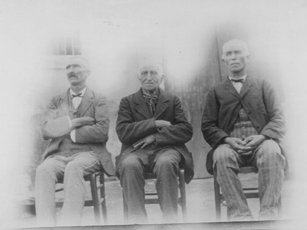 Baptiste Crabié (1818-1904), entouré de ses deux fils : A gauche : Auguste Crabié (1845-1912) et à droite : Joseph Crabié (1843-1919) |