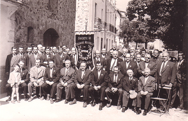 Les sociétaires réunis pour la photo devant le café "Bourreil"