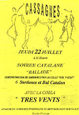 Cobla - Les Tres Vents, le jeudi 22 juillet 2004 "Sardan'a Cassagnes" composée ce jour là par Olivier Marquès. |
