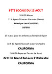 A 18h30, l'orchestre "California" prend le relais pour quelques morceaux de variétés puis enfin à partir de 22h, le grand bal toujours avec "California". |