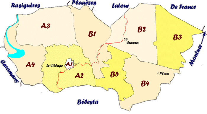 Avant de débuter cette étude par lieux-dits, voici tout d’abord une rapide présentation du cadastre actuel de Cassagnes. Il est composé de 2 sections A et B divisées en plusieurs planches, chacune d’elles comprenant les lieux-dits qui nous intéressent.