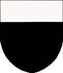 "DE SABLE A TROIS BANDES D’OR ET UN CHEF DE MEME"