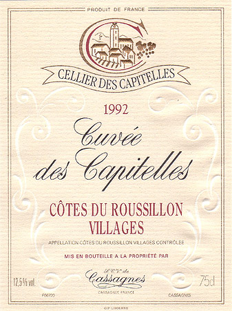 1992 - Cuvée des Capitelles. Cellier des Capitelles