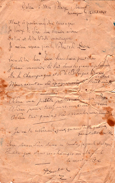 Sonnet daté du 12 avril 1915 Photo : Famille archives Oms-Barraut |