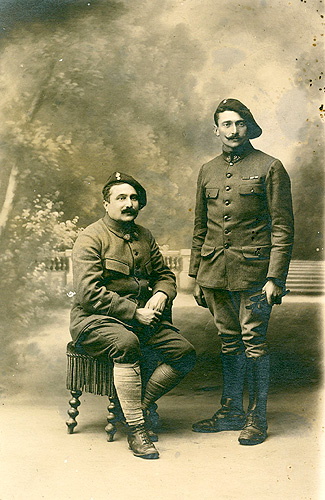 1918 - Au 97ème RI avec un copain Photo : Archives famille Hurtebize-Crabié |