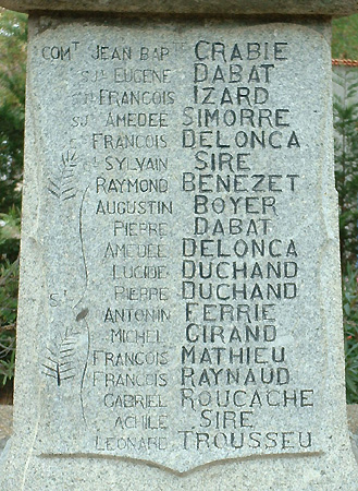 | Noms des 19 enfants de Cassagnes "Morts pour la France" entre 1914 et 1918. |