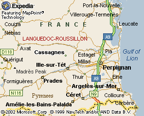 - Selon le système ED50 : Longitude 02° 36' 44'' E et Latitude 42° 44' 28'' N